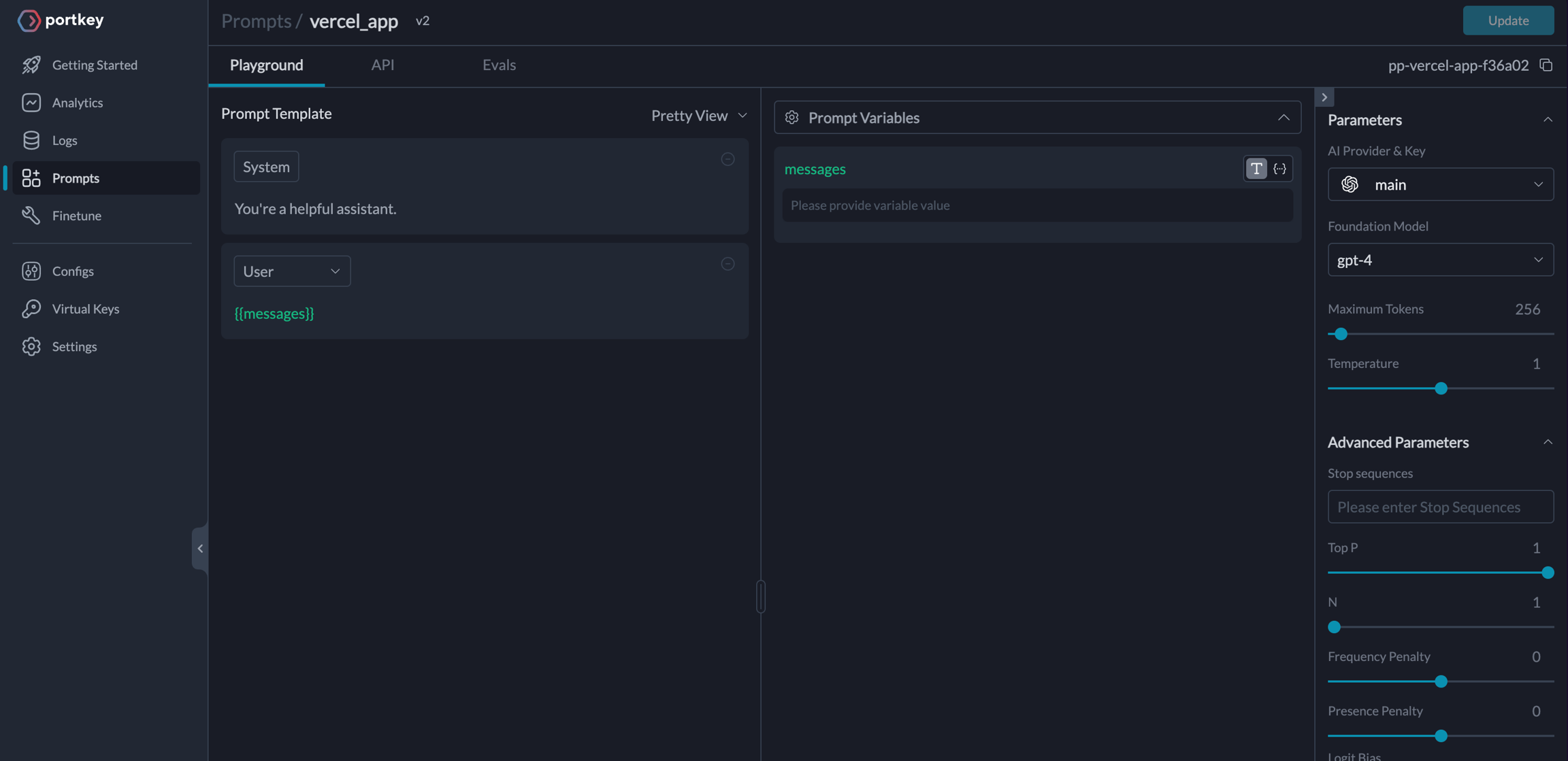 Storing prompt templates and instructions in code is messy. Using Portkey, you can create and manage all of your app’s prompts in a single place and directly hit our prompts API to get responses. Here’s more on what Prompts on Portkey can do. To create a Prompt Template,- From the Dashboard, Open Prompts